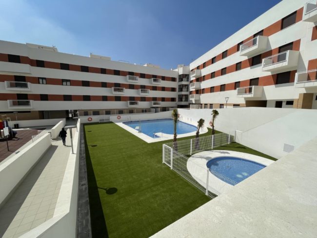 Más información Av. de la Libertad DOS HERMANAS (SEVILLA) Promoción Entregada Tipología: PlurifamiliaresUnidades: 123 viviendas       Características Viviendas de 1, 2 y 3 dormitorios Acabados de primera calidad con opciones de personalización Locales comerciales Garajes y trasteros en sótano Piscinas Zona de juegos infantiles Amplia zona ajardinada y de esparcimiento